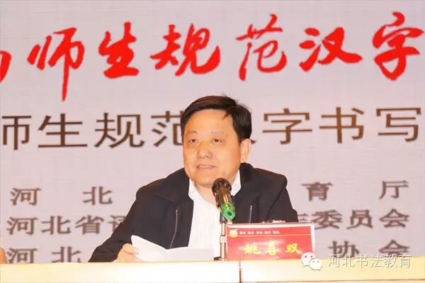 河北省首届师生规范汉字书写大会于今年4月上旬启动,大会主题为“书写规范汉字,传承中华文化”,旨在通过作品展览、公益讲堂、现场书写等方式,普及汉字文化和规范书写知识,全面提高广大师生汉字书写水平,传承和弘扬中华优秀传统文化。大赛共收到52个分赛区按要求选送的参评作品2697幅,经过初评、复评和终评,共评出获奖作品516幅。此次获奖作品展览还特别邀请了北京、天津的师生代表参加,这是今年6月份《京津冀语言文字事业协同发展战略协议书》签订后三地加强语言文字展览协作与共享的开端。 姚喜双司长发表重要讲话。他说,为落实《语言文字规划纲要》和《中小学书法教育指导纲要》,近年来教育部、国家语委举办了全国学生规范汉字书写大赛、中国汉字听写大会、书法名家进校园等系列活动。他指出,字是人的第一名片,写字比书法更重要,我们不要求人人都成为书法家,但我们要求人人都能写一手好字。他认为,河北省在推广普通话和推行规范汉字方面的许多做法都走到了全国前列,取得了良好的育人效果和社会反响,并对京津冀语言文字事业协同发展提出殷切希望和指导性意见。 王廷山在会上做了讲话,他说,每件作品中的每个字对作者来说,就是一个世界。感情、意志、情怀,处世的观点,做人的风格,都已倾注于每个字之中。师生规范汉字书写在京津冀三省市已初具良好的环境和氛围,产生了一定的影响力。这次展览也是我们互相学习提高的一次极好机会。他希望大家共同交流,努力锤炼,互学共勉,为助推京津冀语言文字事业协同发展多做贡献。