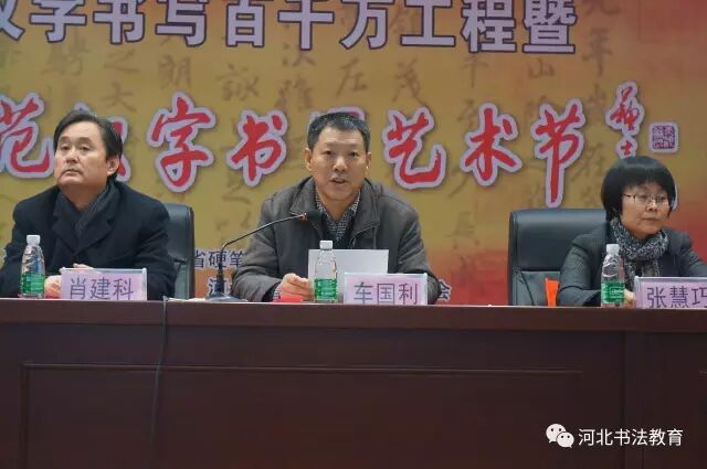 市语委办主任姚龙主持会议 车国利副局长在讲话中指出,弘扬中华优秀传统文化,是培育和践行社会主义核心价值观的一个重要方面,我们立足汉字文化和书法教育,以此展示我市汉字书写教育成果,提高广大师生汉字书写水平和审美品位,营造规范书写的良好社会氛围,促进我市精神文明建设。