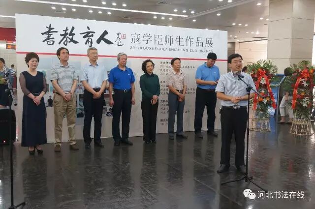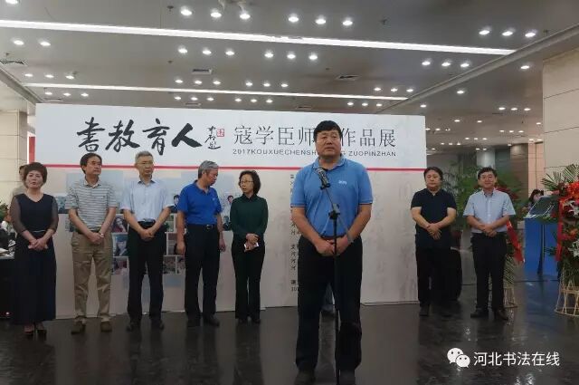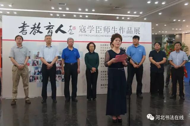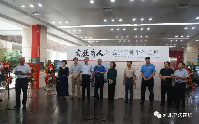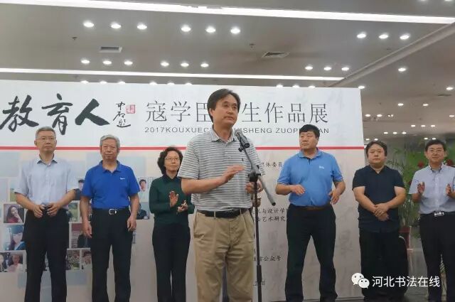 9月9日,为喜迎党的十九大,庆祝第33个教师节,由河北省政协科教文卫体委员会、民进河北省委员会、河北省书法家协会主办,河北省图书馆、河北师范大学美术与设计学院等承办的“书教育人——寇学臣师生作品展”在河北省图书馆云水展廊隆重开幕。