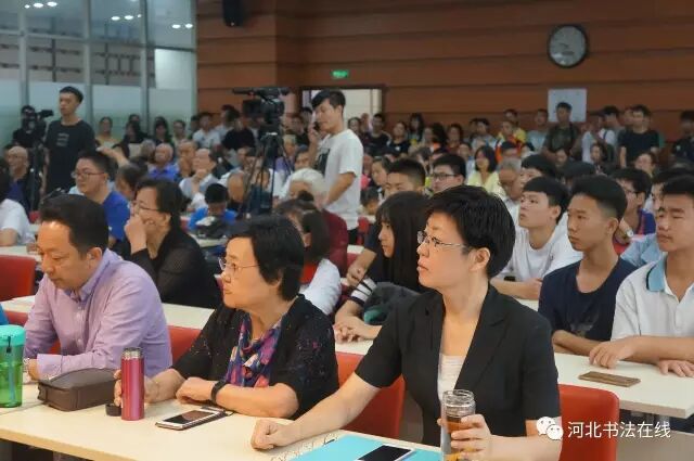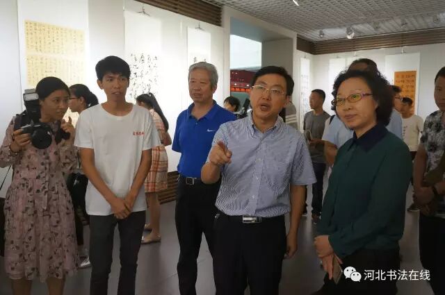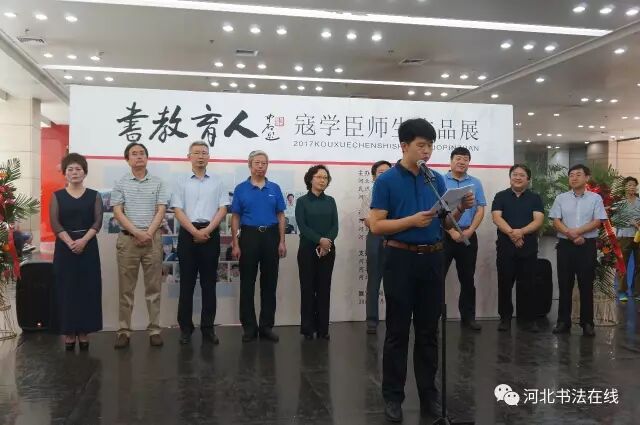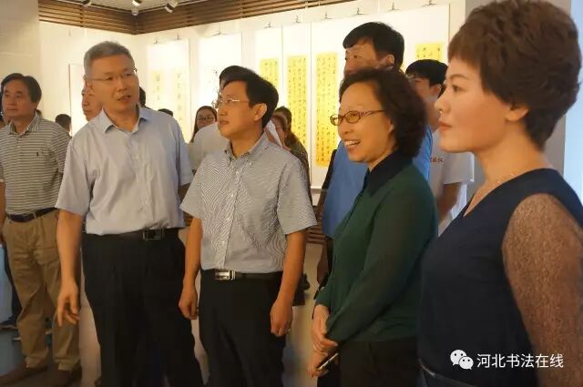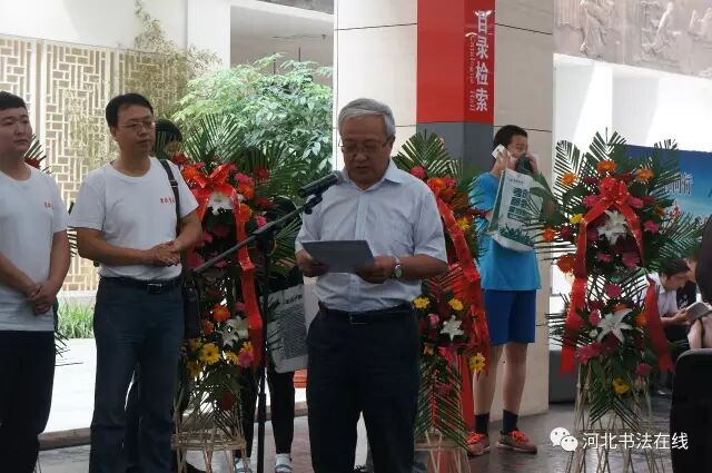 河北省文化厅厅长张妹芝、河北省政协教科文卫体委员会副主任王张鹏、河北省教育厅原副厅长张益禄、河北省民进原驻会副主委解观安、河北师范大学党委副书记戴建兵、河北省书协副主席肖建科、河北师范大学美术学院院长王福明、河北省图书馆副馆长冉华,以及省会书法爱好者、师生代表300余人出席开幕式,开幕式由河北省民进驻会副主委兼秘书长李建强主持。