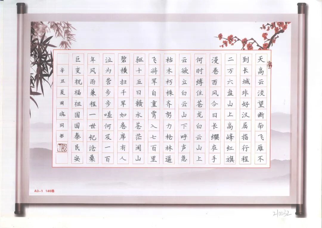 编者按 每年9月份,我们都会迎来一个特殊的节日——全国推广普通话宣传周和河北省普通话与规范字双推月。今年第24届全国推普周主题为“普通话诵百年伟业 规范字写时代新篇”。为助力全国“推普周”和河北省“双推月”活动开展,由河北省教育厅、河北省语委和河北省书协主办的河北省第四届汉字书写大会获奖作品,将在河北语言文字网、河北教育网、河北书法教育网、河北书法在线等网络媒体陆续展出,以飨广大读者。