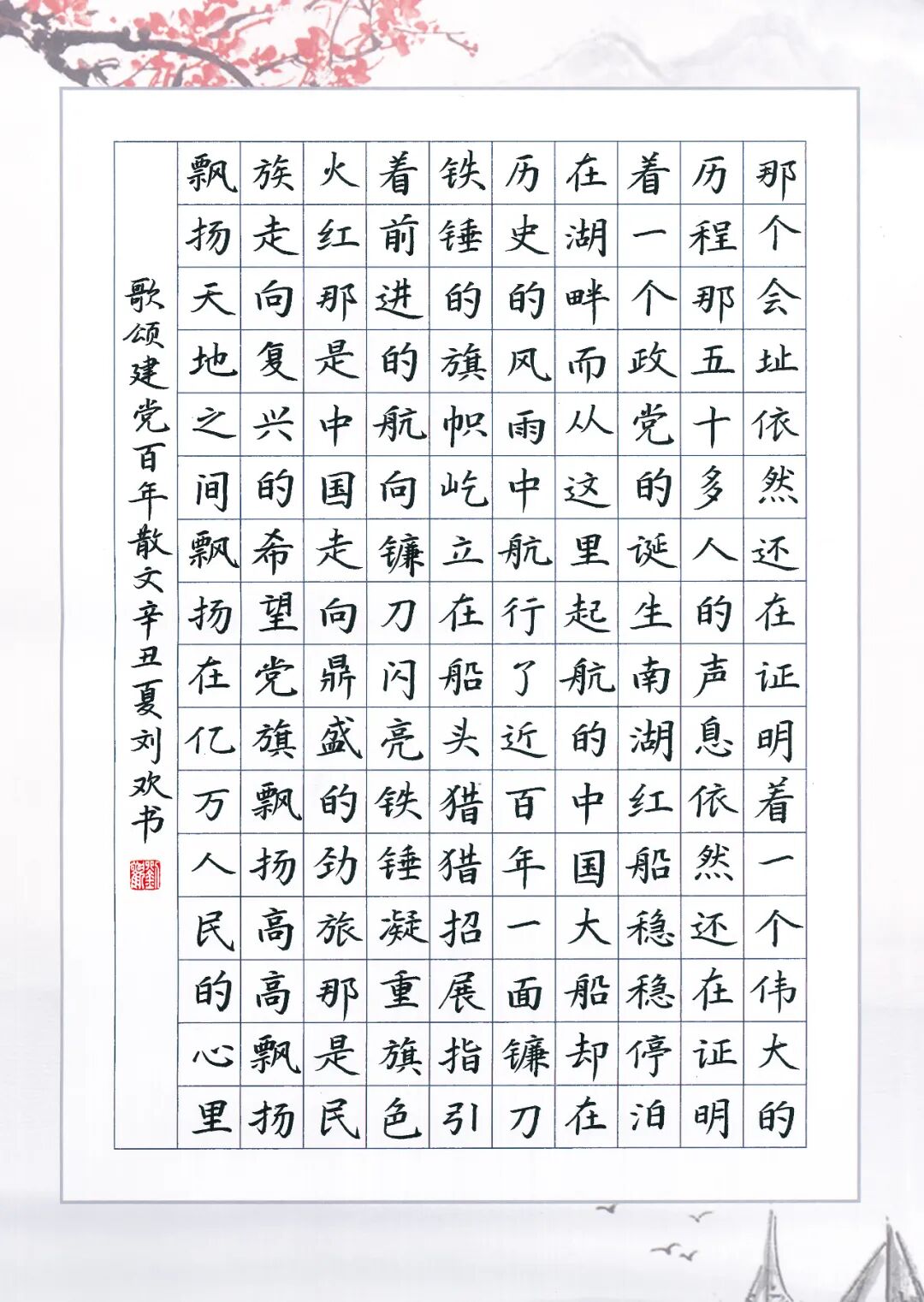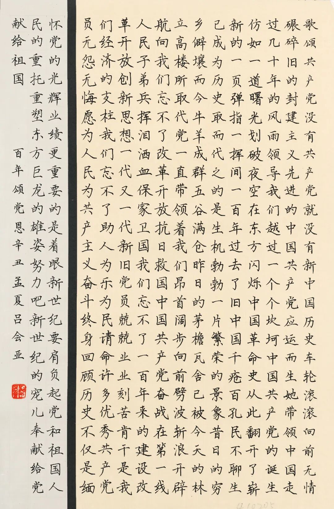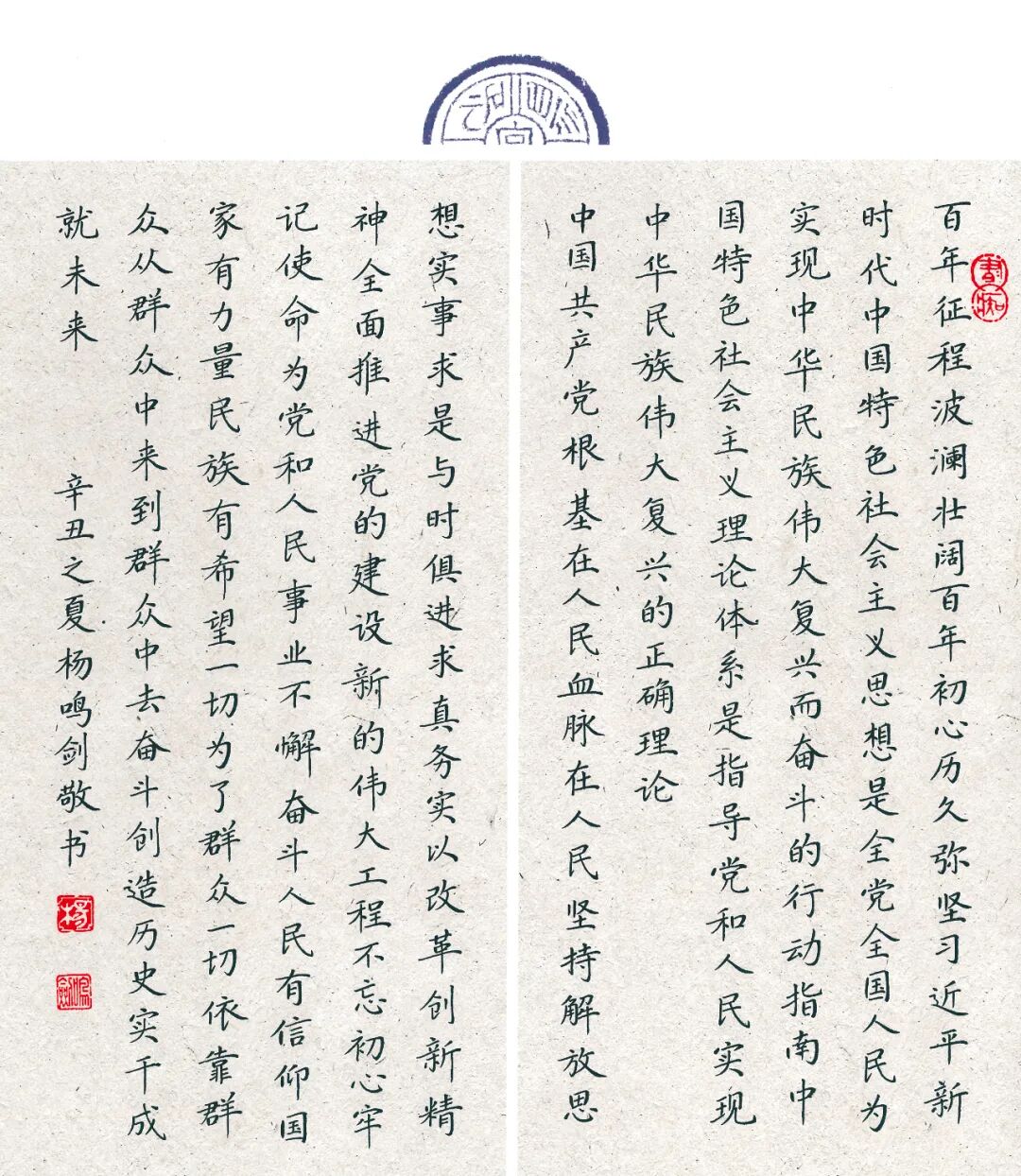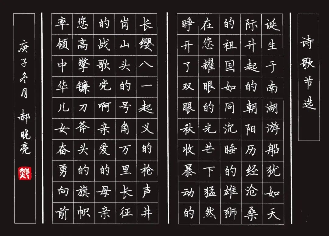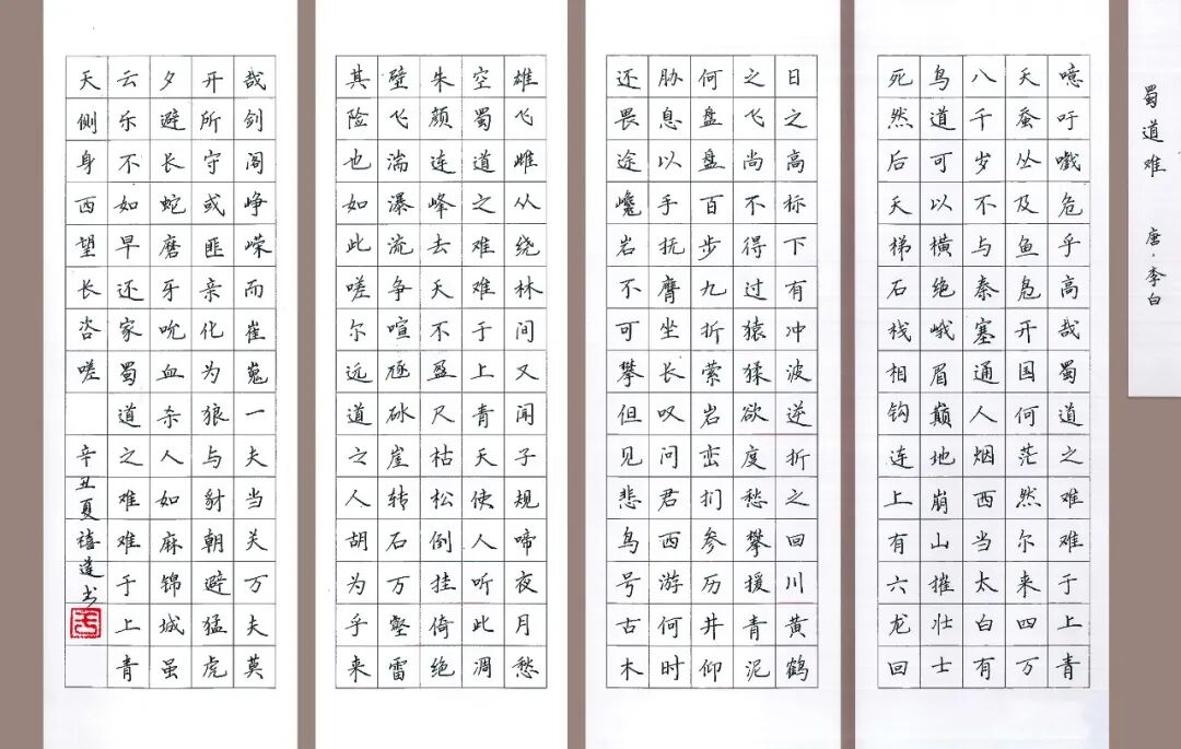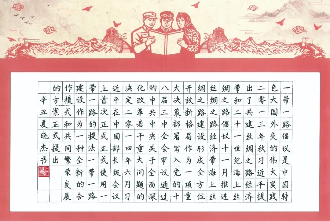 编者按 每年9月份,我们都会迎来一个特殊的节日——全国推广普通话宣传周和河北省普通话与规范字双推月。今年第24届全国推普周主题为“普通话诵百年伟业 规范字写时代新篇”。为助力全国“推普周”和河北省“双推月”活动开展,由河北省教育厅、河北省语委和河北省书协主办的河北省第四届汉字书写大会获奖作品,将在河北语言文字网、河北教育网、河北书法教育网、河北书法在线等网络媒体陆续展出,以飨广大读者。 教师硬笔一等奖